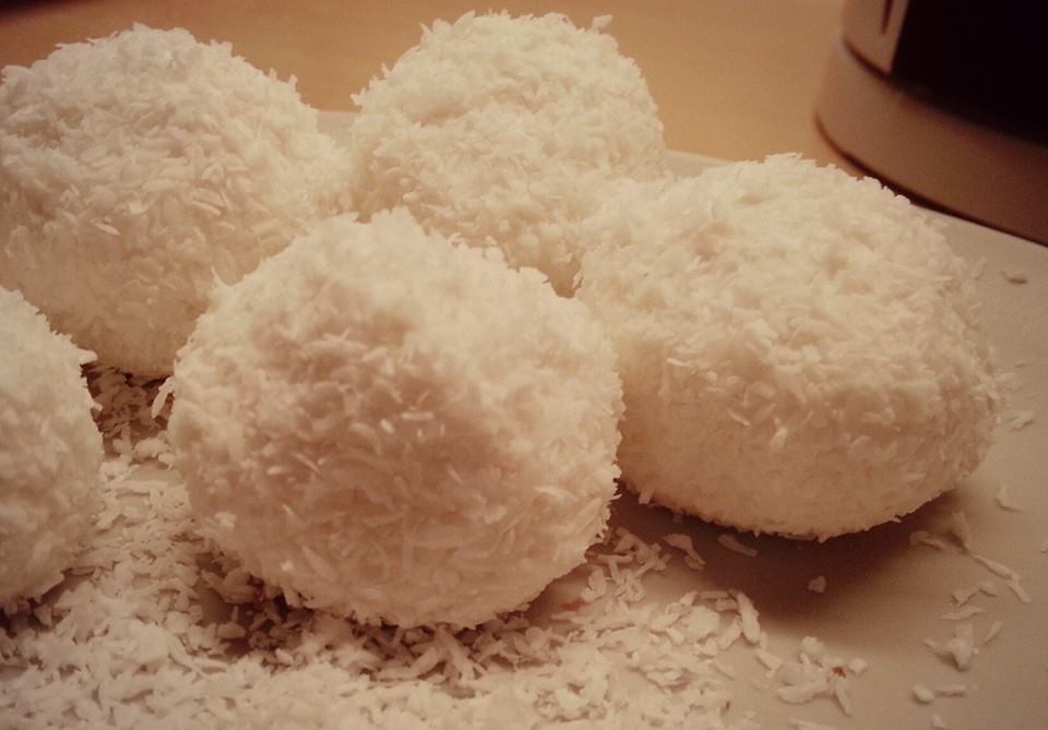 Tehàt, borzasztò egyszeru. Osszekeverjuk az alapanyagokat, addig amig egy massziv masszàt nem kapunk, majd golyòkat formàlunk belole, meghempergetjuk a kòkuszreszelèkben, ès kèèèsssssszzz iiis!!!!!! Inyenceknek egy falat banàn/szeder/màlna is mehet a kozepèbe.. Bevallom èn nem pepecseltem ezzel.. de a fantàzia hatàrtalan mèreteket olt :D